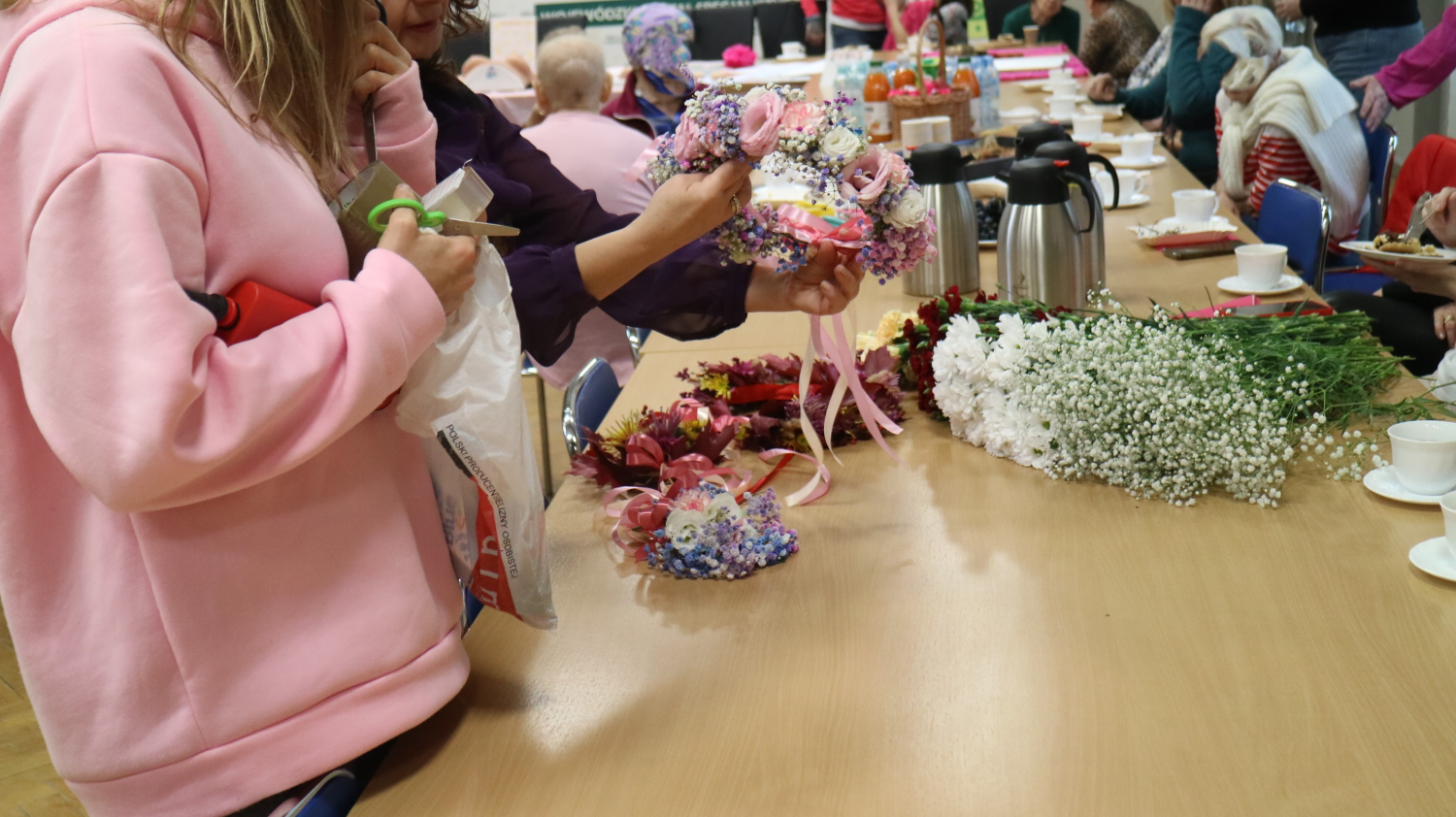 W trakcie spotkania pacjentki mogły przymierzyć peruki, zrobić makijaż, zrelaksować się przy dźwiękach muzyki albo wziąć udział w warsztatach układania kwietnych wiązanek i wianków.